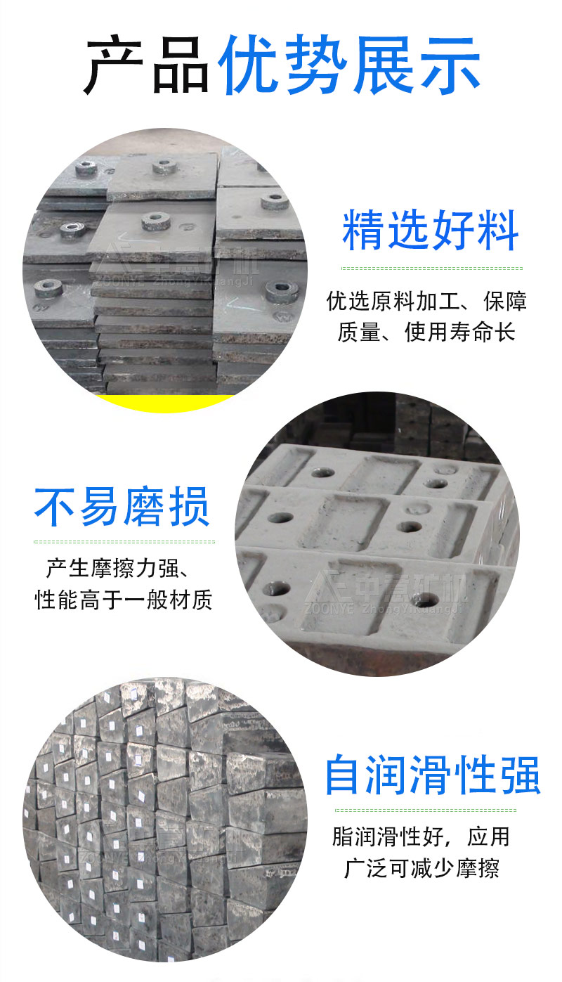 ? ? 襯板經(jīng)科學(xué)合理的合金元素配方,使該襯板具有良好的理化性能,能夠承受大的沖擊力度。在工作中能長(zhǎng)期保持襯板的表面形狀,提高產(chǎn)量。